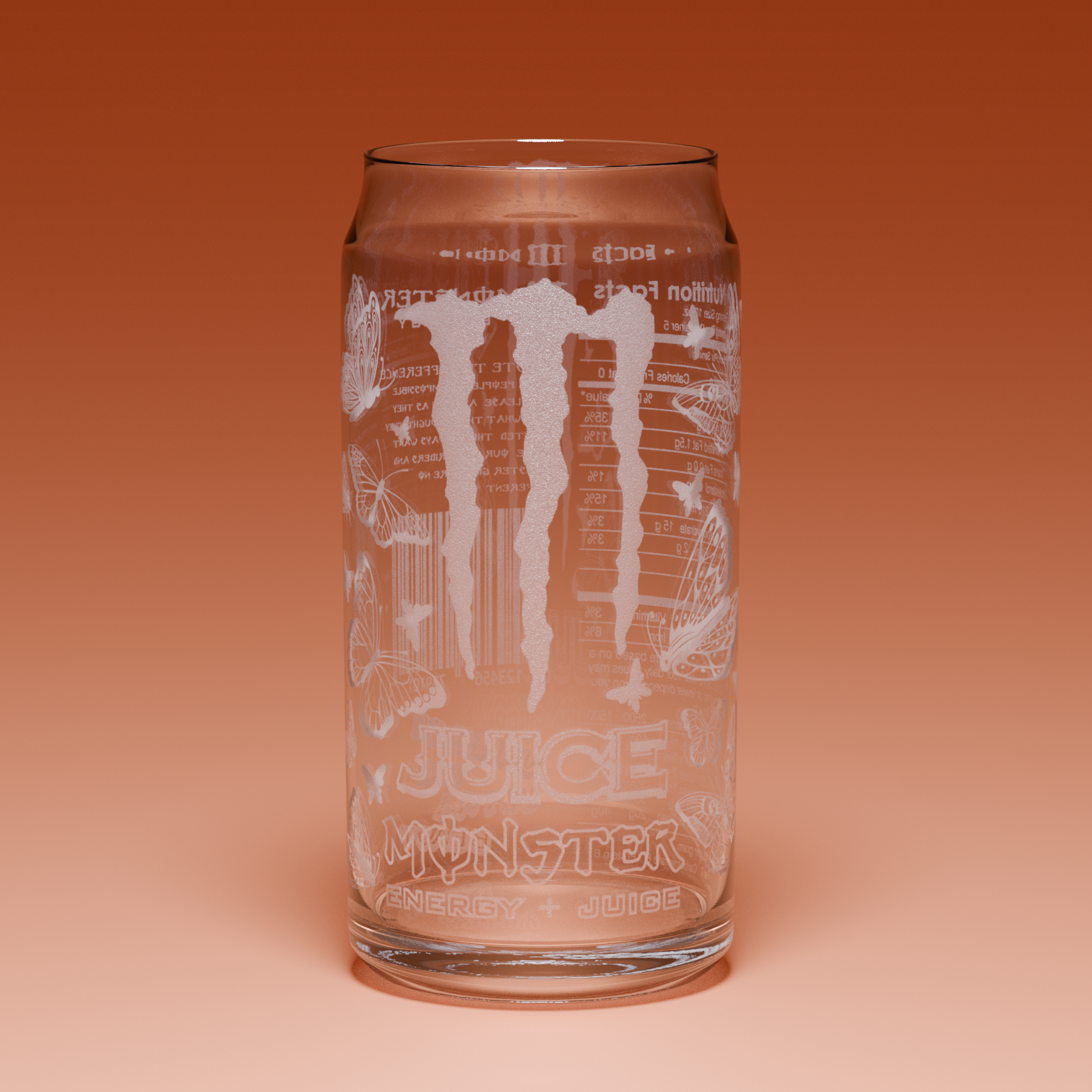 This nearly 1 for 1 replication of the top energy drink in the US is our most premium glass ever produced. It starts with a high quality can shaped glass formulated from high quality lime glass. We finish it off with a precision engraving with every single detail from a real energy drink can. Only available while supplies last.